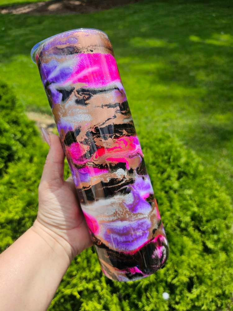 30oz watercolor glitter skull epoxy tumbler